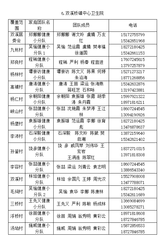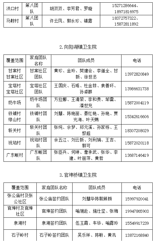 为最大限度减少疫情对经济社会发展的影响进一步保障咸安区广大居民基本医疗和健康服务需求12月19日咸安区卫健局公布180支家庭医生签约服务团队的名单及联系方式家庭医生签约服务团队是按照分级分类的原则,针对不同人群提供针对性、防治结合、持续有效、综合、个性化的基本医疗、公共卫生和约定的服务要求,尤其是老、弱、残、孕、病等重点人群的医疗等保障工作。1区卫健局提示居民出现发热、咳嗽等症状居家治疗不见好转时,可首选居住地附近的社区卫生服务中心(乡镇卫生院)就诊或联系家庭医生团队寻求帮助。名单及联系方式如下