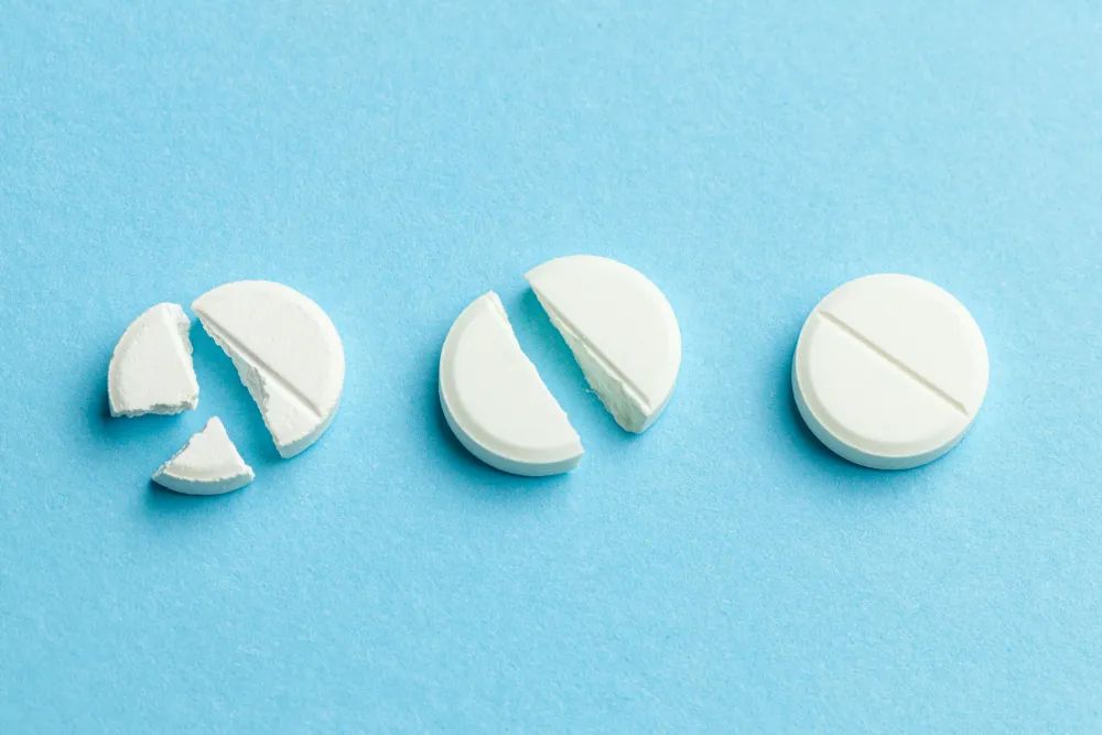 3. 小心把药片切开,取出相应的药量来,比如半片、四分之一片,用温水送服。