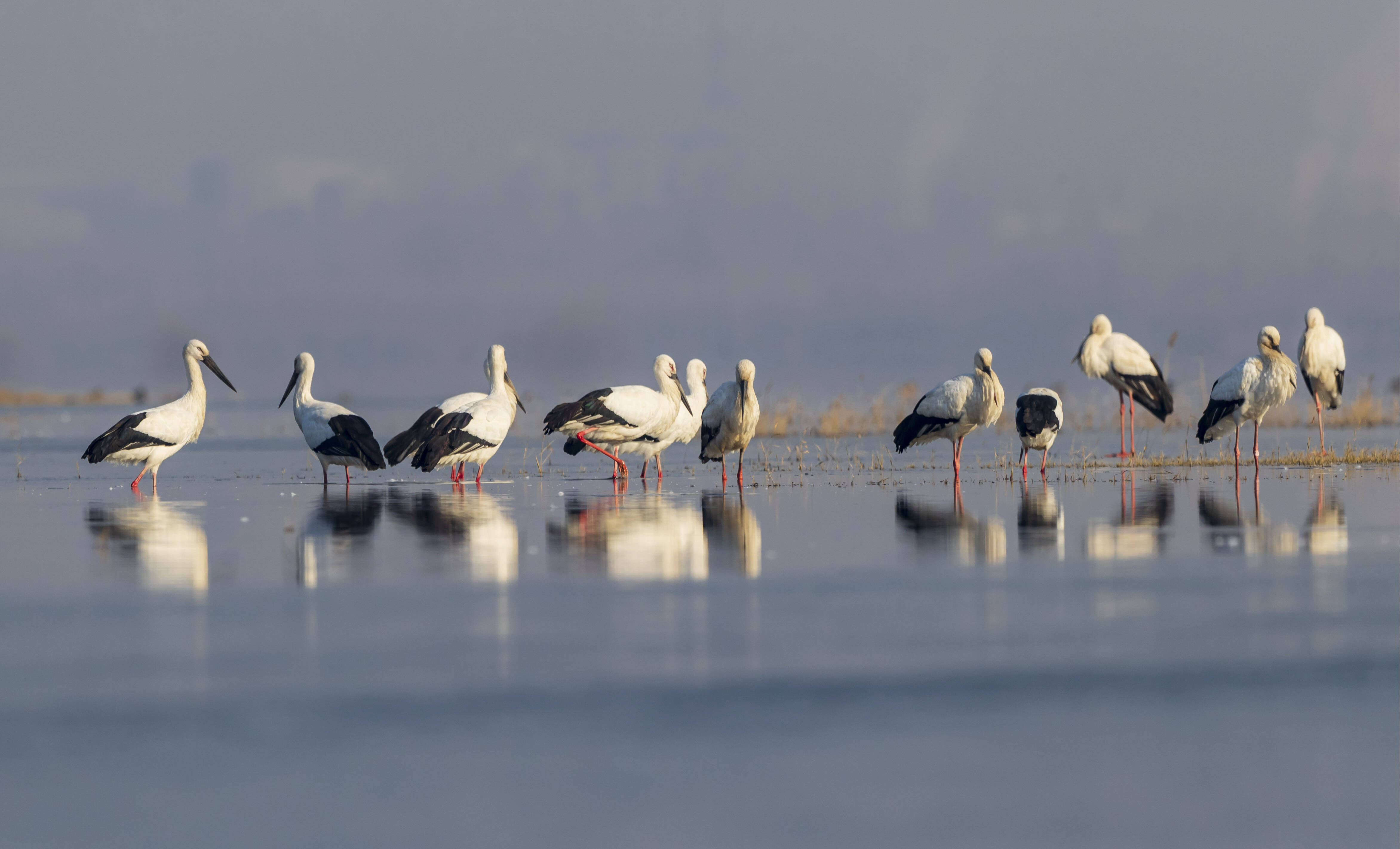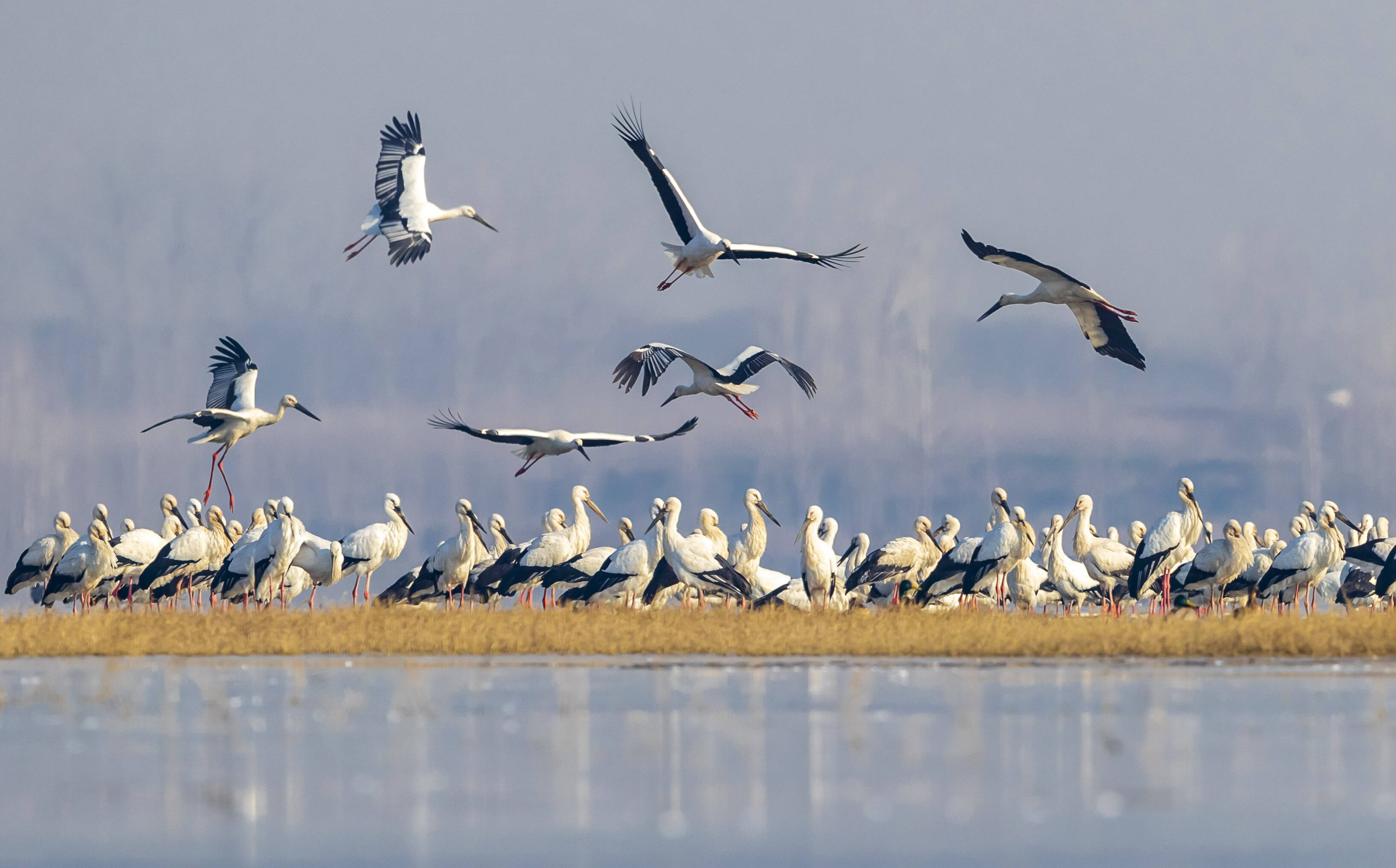 齐鲁网·闪电新闻12月19日讯 近日,数百只东方白鹳飞临郯城县沂河畔越冬,给平静的河滩增添了一道靓丽的风景。据当地鸟类专家介绍,东方白鹳是国家一级保护动物,有“鸟界国宝、鸟类大熊猫”之称。常在河流、沼泽、湿地涉水觅食,主要以小鱼、蛙、昆虫等为食。珍稀候鸟东方白鹳来此“做客”,跟这里良好的生态环境有关。