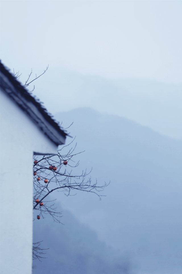然而冬天的多彩,偏偏来自无情中的深情。像硬邦邦的,树皮皱得严肃的柿子树,落尽叶子,以为苍老不堪,枝头几枚红柿却有了别样的看头。看似冷峻,生命仍在缓慢流动。这便是色冬。