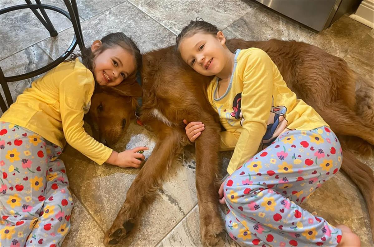 女孩儿们与宠物金毛合影(图片来源:《纽约邮报》)