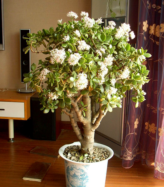 玉树这种植物很多人家里都养过,它的叶片宽厚肥大,造型霸气,深受人们的喜爱,但许多人都把它当观叶植物养,殊不知其实这种植物是能开花的。玉树开花及其难见,是非常稀有的景象,一般要养十年以上的玉树大苗才能见到它开花,它的花朵是雪白色的,开出来像下大雪一样,十分壮观。