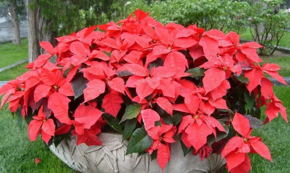 一品红的花朵红艳艳的,非常喜庆,刚好符合我们习惯的审美,所以很多人喜欢把它买回家装点节日气氛。不过一定要注意的是,一品红的毒性很强,是一种有毒的花,尤其是它红色的部分,如果家里有小孩和宠物的,一定要远离,以免误食中毒。