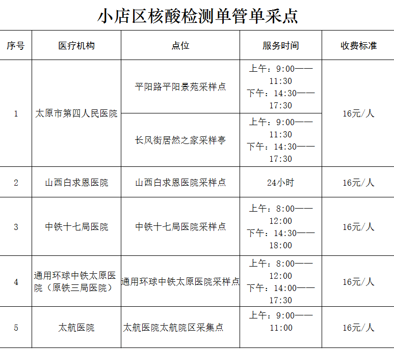 自2022年12月15日起,太原市第四人民医院核酸采样点不再进行混采,采用自愿自费、单人单检方式。