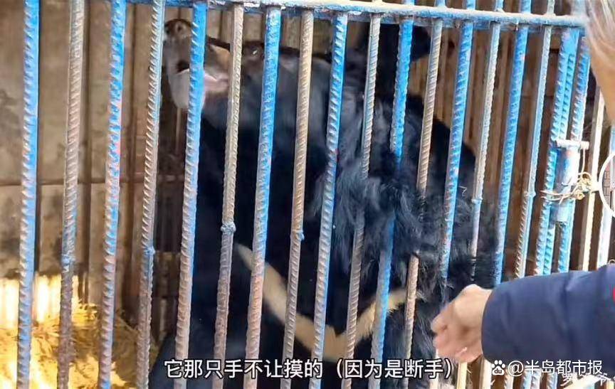 黑熊“乖乖”靠到栏杆前,罗应玖摸了摸它的头。“它那一只手不让摸,因为是只断手。”