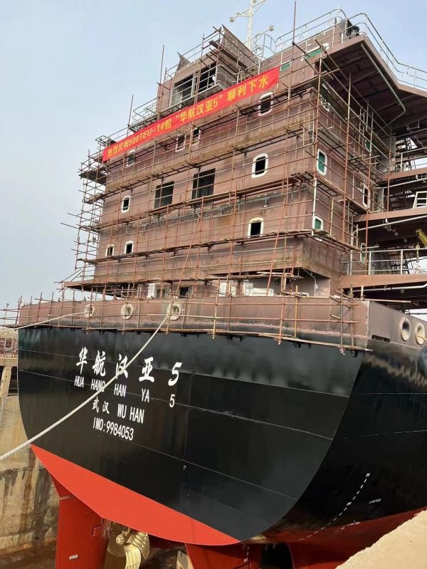 “华航汉亚5号”轮是国内首艘江海直航新船型“华航汉亚1号”轮的姊妹船,由武汉长江船舶设计院有限公司设计。去年12月29日,华中港航物流集团所属武汉新港大通国际航运有限公司与青岛造船厂有限公司在汉签订两艘船建造合同,今年4月27日点火建造。