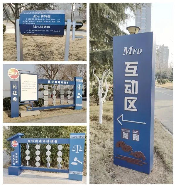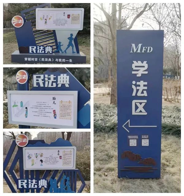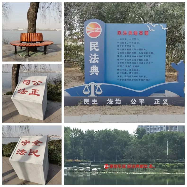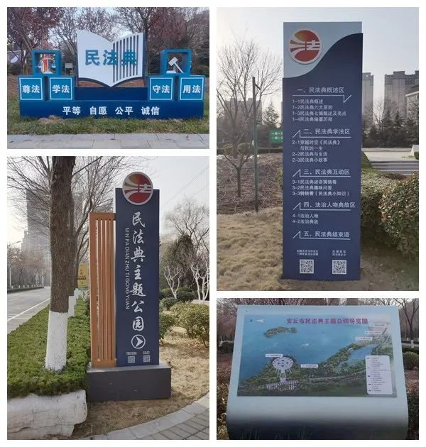 为进一步弘扬法治精神,传播法治文化,提升全民法律素养,近日,安丘市新建成法治文化宣传阵地——民法典主题公园。主题公园位于青云湖南岸的大汶河国家城市湿地公园景观带,全长约1.5公里,依托大汶河国家城市湿地公园景色优美、社区密集、流动人口多的优势,将法治元素与沿途自然景观完美结合,形成了一条具有安丘特色的法治文化带。主题公园分为标识区、概述区、学法区、互动区和法治人物典故区五部分,设置了宣传版面、大理石雕塑、休闲长椅等普法载体,内容贴近生活、形式图文并茂,让广大群众在休闲娱乐的同时,潜移默化地接受法治文化的熏陶。一、标识区:入口处设立“安丘市民法典主题公园”标识和导览图,导览图以平面图的形式展现主题公园全貌。二、概述区:设置10个版面,分别介绍民法典的六大原则、民法典66年编纂历程、民法典概述以及群众日常关注密切的28个亮点等内容。三、学法区:设置14个版面,分别介绍民法典与我的一生、民法典与生活、民法典小故事等内容。 四、互动区:设置民法典谜语猜猜看、民法典趣味问答、转转看(民法典小知识)等互动游戏。 五、法治人物典故区:设置8个版面,分为法治人物和法治典故两部分,展现历史上的法治文化典型人物与故事。 民法典主题公园是落实安丘市“八五普法”规划的重大举措,下步,安丘将持续打造具有本地特色的法治文化品牌,推动全市普法宣传工作走深走实,为建设更高水平的法治安丘作出更大的贡献。来源:法治安丘
