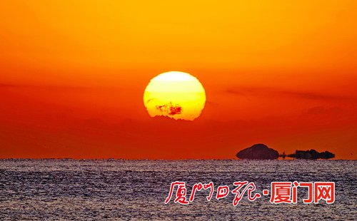 昨日我市晴朗少云,清晨海上升起一轮红日。(厦门日报记者 林铭鸿 摄)
