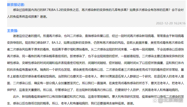 12月20日15时,国务院联防联控机制召开新闻发布会,介绍重点人群医疗服务有关情况。会上有媒体提问,感染过目前国内流行的BF.7和BA.5.2的变异株之后,再次感染新的变异株的几率有多高?如果多次感染会有怎样的后果?会不会对人的免疫系统造成损害?