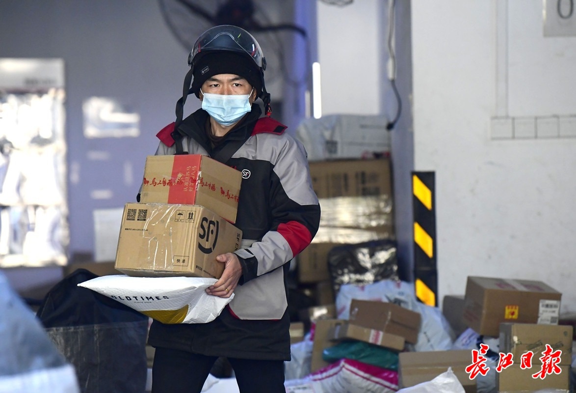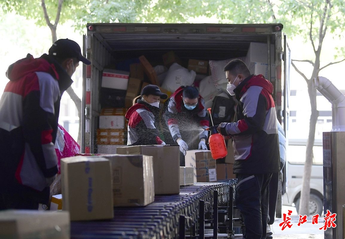 长江日报大武汉客户端12月20日讯 连日来,武汉顺丰速运常青营业部,一辆辆满载货物的车辆刚刚停稳,工作人员各司其职有条不紊地开始卸货、消毒、分拣、转运,一件件货物很快被快递小哥送往客户手中。顺丰速运常青营业部负责人介绍,近期货物量明显增加,70余名快递小哥为尽快将货物送到客户手上加班加点。快递中除日常用品外,还有不少医用防疫物资。(长江日报记者刘斌 通讯员熊峰 摄影报道)