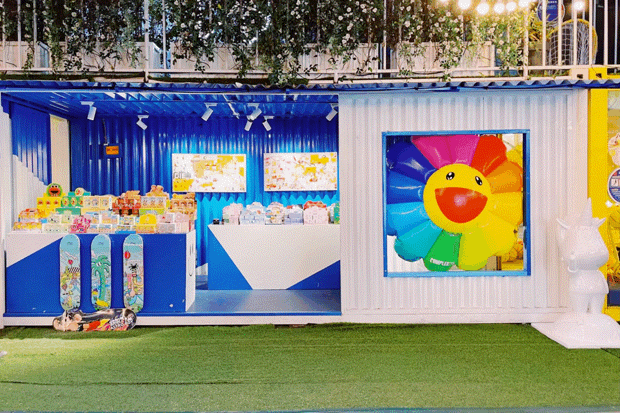 户外长廊的“超集市场”是虹桥天地长期设置集装箱市集主题街区,在集装箱市集内打造独立品牌空间,形成一个小的商圈。