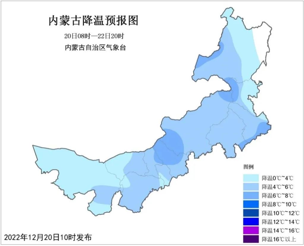 受冷空气影响,12月20日至22日,我区将迎来大范围大风、局地沙尘、中东部降雪以及降温天气。中东部大部地区有小雪,通辽市东南部有中到大雪;全区大部地区4、5级短时6、7级西北风,局地阵风可达8、9级,西部和中部偏西地区局地伴有沙尘天气;全区大部气温下降4到6度,局部地区气温下降6到8度。具体预报如下: