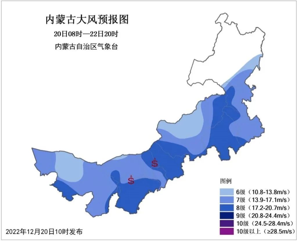 12月20日至22日,东部降雪以及降温天气,中西部、东部偏南地区4、5级短时6、7级西北风,局地阵风可达8、9级,西部和中部偏西部分地区伴有沙尘天气。