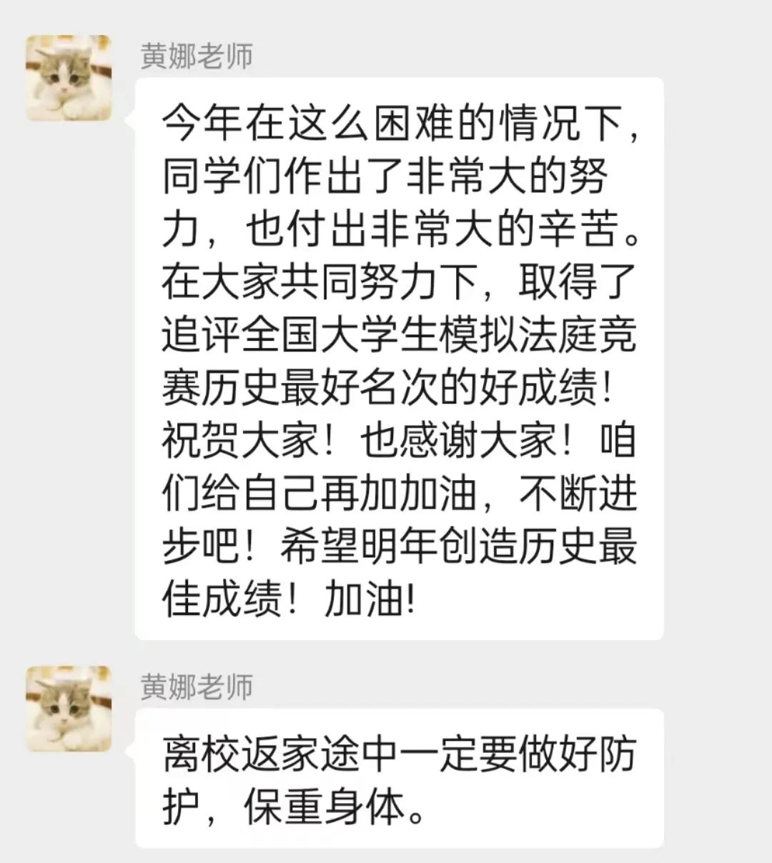 无论是凌晨老师秒回信息、陪着同学们一起熬夜讨论,亦或是改了一版又一版的辩护词,都能让大家倍受鼓舞、干劲十足。