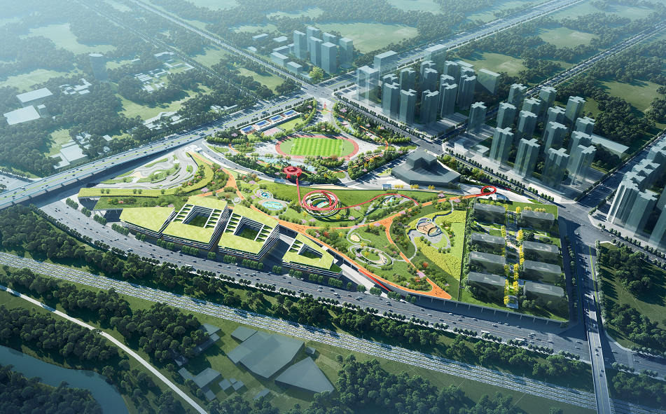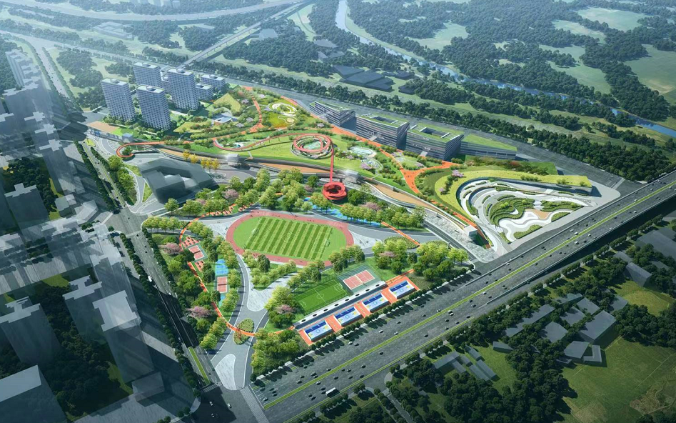 “藏起来的是列车”——项目通过钢筋混凝土封闭和覆土绿化方式,结合体育公园及区域景观,将停车场整体融入城市生态之中。