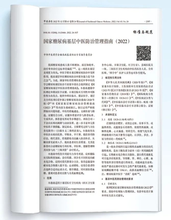 为此,2022年9月,国家中医药管理局委托中华中医药学会糖尿病基层防治专家指导委员会组织制定《指南》。12月14日,《指南》在《中医杂志》率先发布。这也标志着我国基层医疗卫生机构,县域医院及一级、二级医疗卫生机构对于糖尿病的中医防治有了更为严谨、科学、规范的管理体系,是我国基层糖尿病患者的一大福音。