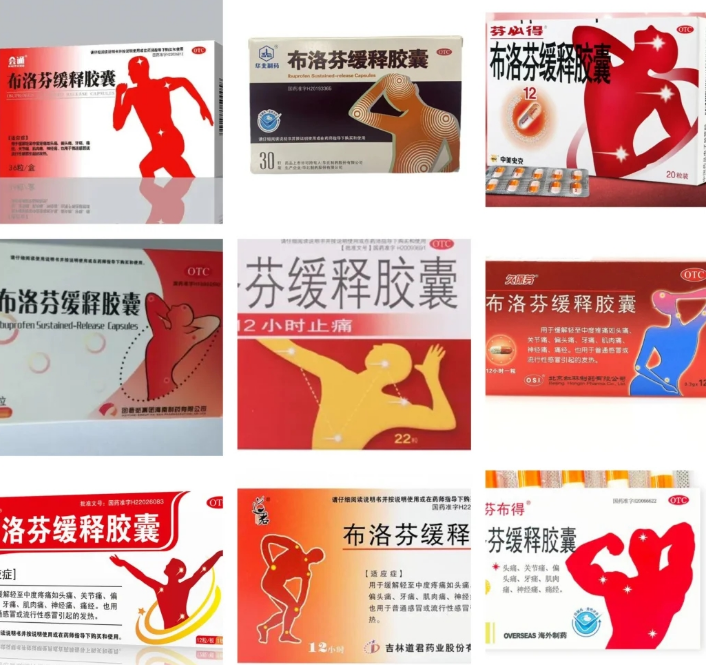 其实,这些各种各样“姿势”的布洛芬,本质上是不同厂家的布洛芬产品做的差异化外包装设计而已。