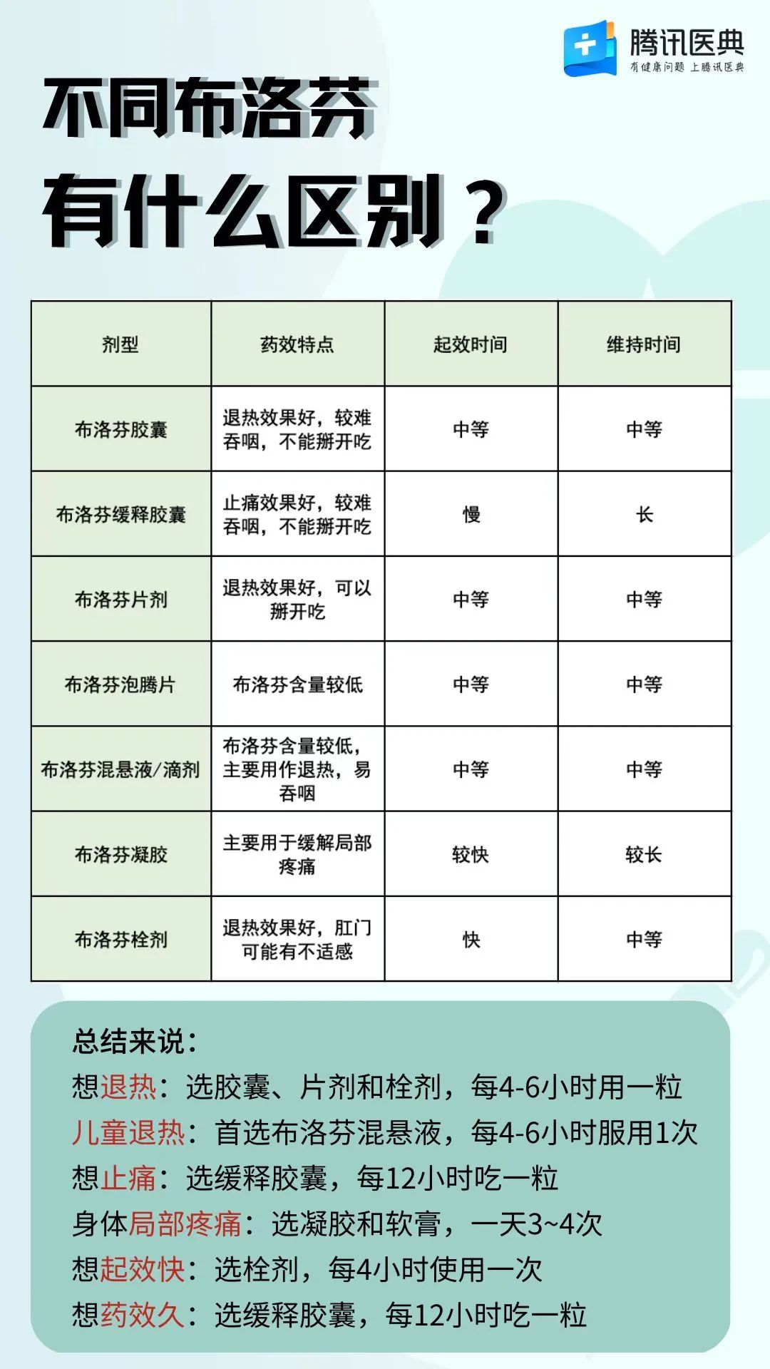虽然看起来眼花缭乱,但不同的剂型,其作用特点、起效时间和维持时间是有区别的。