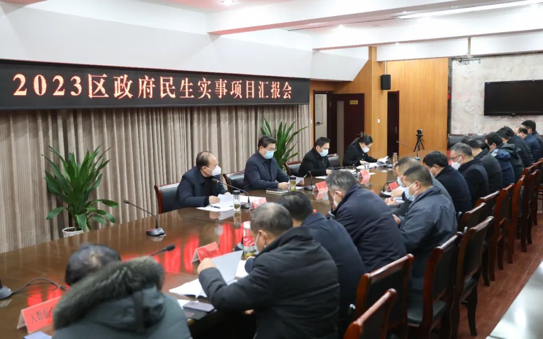 会上,区政府办汇报“十件实事”项目编排情况;参会部门分别发表意见和建议;与会区领导提要求。