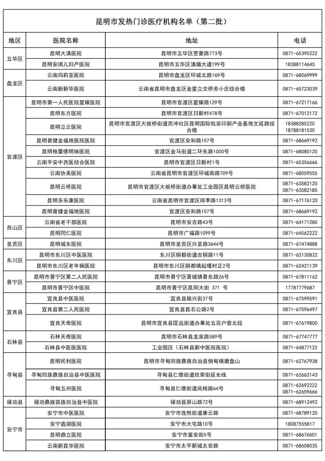 【回应关切】昆明最新一批发热门诊名单汇总!