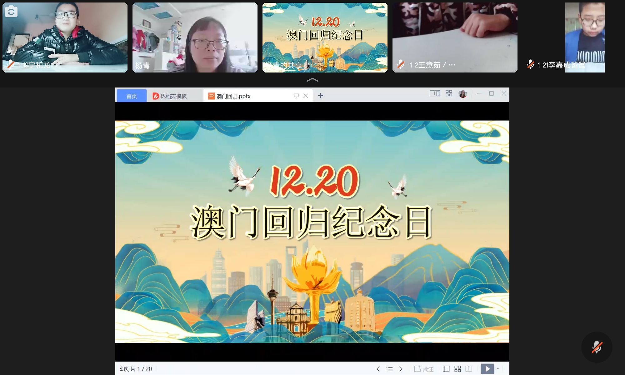 班会课上,班主任老师向同学们展示了澳门的美丽,讲述了澳门地理位置的重要性以及历史问题的由来,与学生共同观看澳门回归历史纪录片,共唱《七子之歌》,通过视频了解澳门的过去和现在。23年来,澳门经济社会发展取得的巨大成就,向世界展示了具有澳门特色的“一国两制”成功实践,彰显了“一国两制”的巨大优越性和强大生命力。