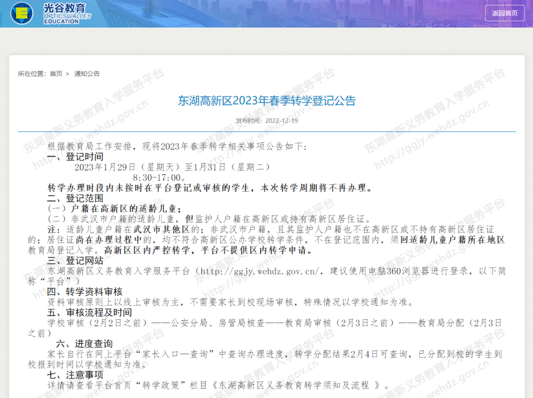 (来源:东湖高新义务教育入学服务平台 武汉城市留言板)