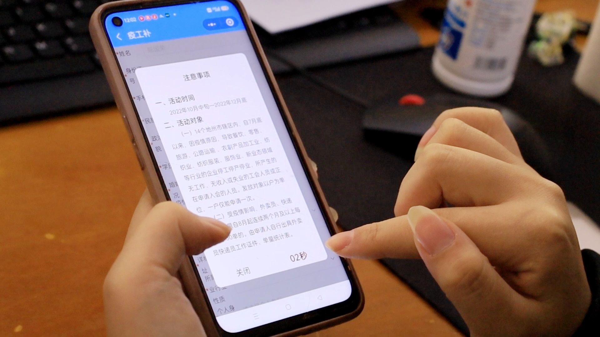 刚领到“疫工补”送温暖救助金的市民殷博说:“在网上看到工会发布的通知,就来申请了这个‘疫工补’,可以领到600元,党和国家这项惠民政策,让我心里觉得特别温暖。”