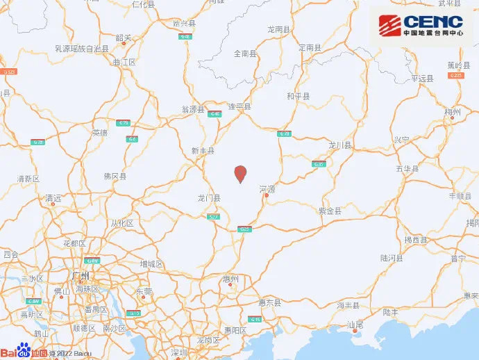 广东省应急管理厅通报,据中国地震台网测定,12月21日凌晨01时03分,在广东省河源市东源县(北纬23.86度,东经114.50度)发生3.6级地震,震源深度8千米。