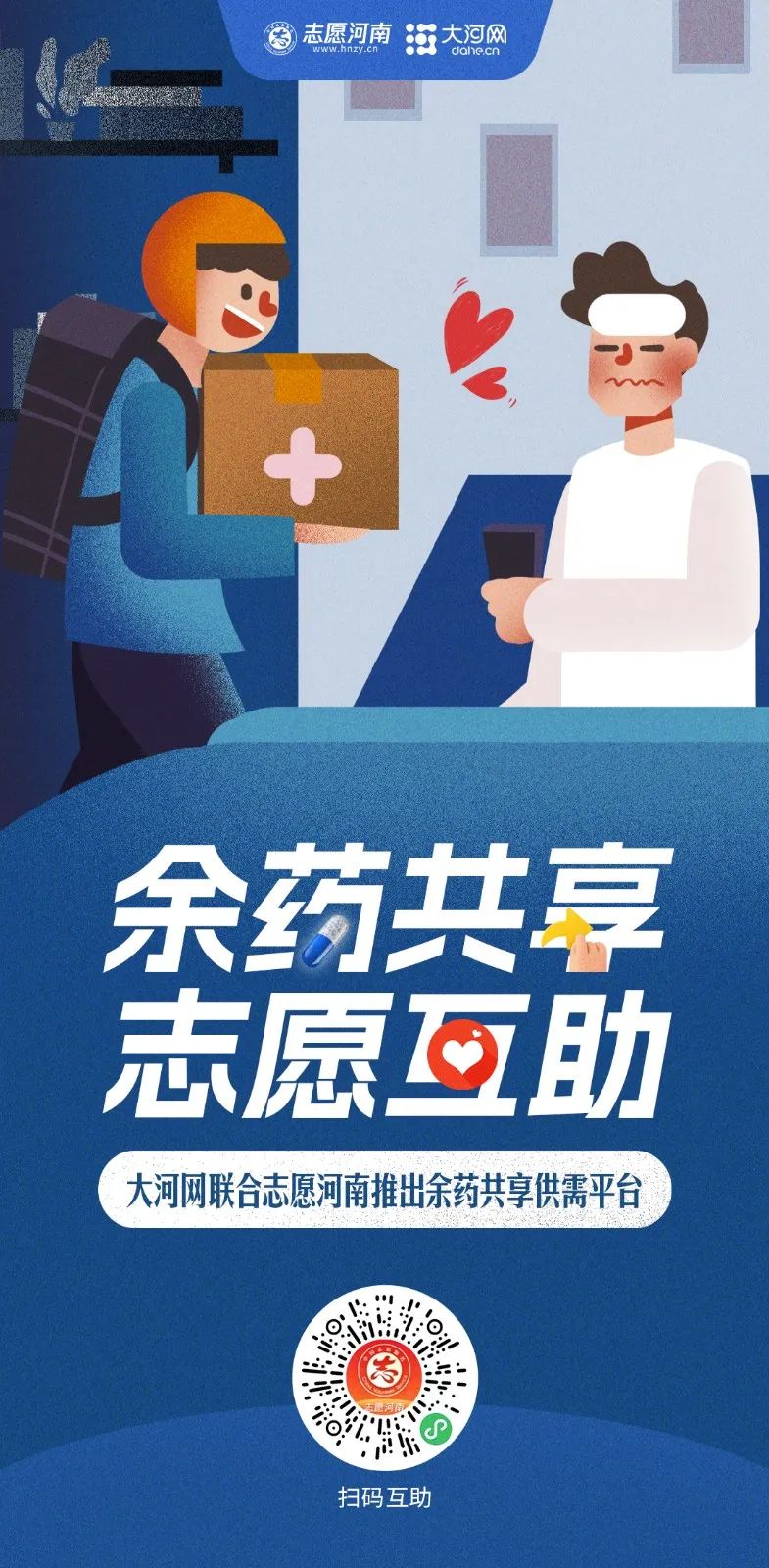 大河网联合志愿河南提供互助平台,帮助广大市民在满足自身用药需求的前提下,以“零接触”的形式,将正规厂家生产、保质期内、性状完好的余药分享给急需的亲友、同事、邻居,让有需要的人在医护人员的指导下及时正确用药。