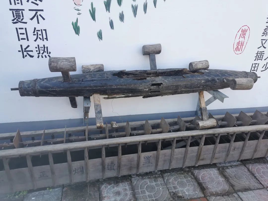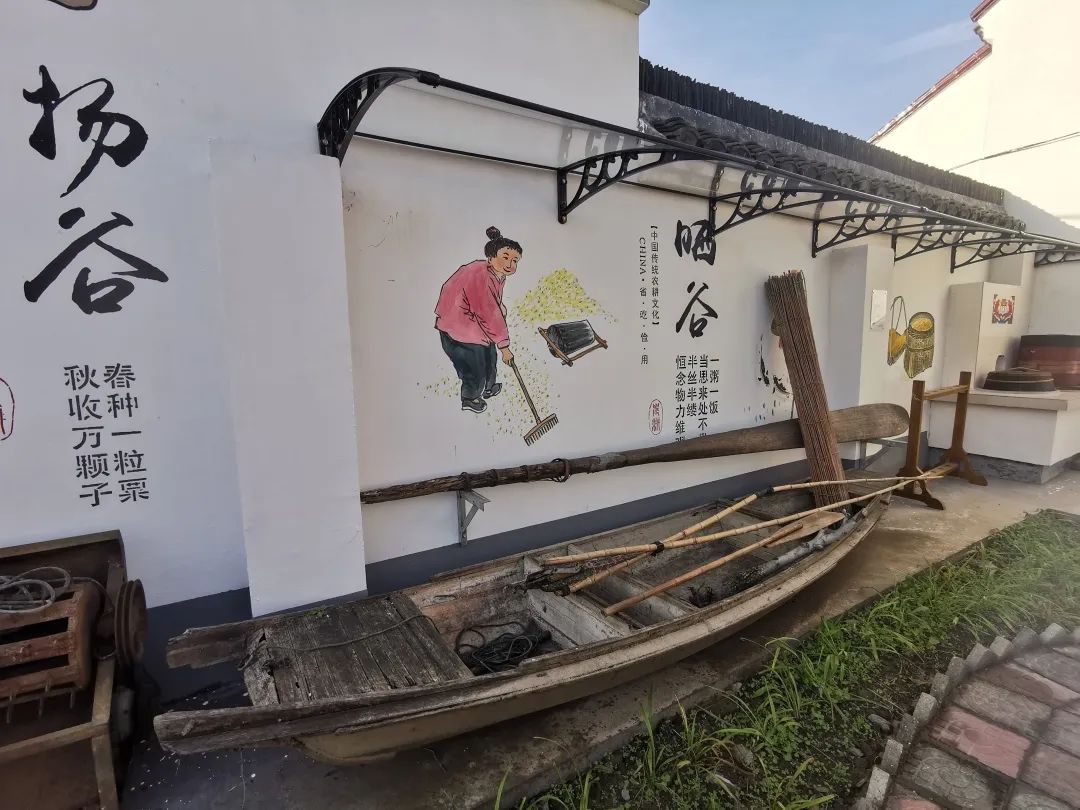 除了室内展馆,室外也展出了许多老物件,墙上还有宣传画,图文并茂,易于理解。旧船上网兜状的工具,引起了参观者的好奇,村民顾亚忠介绍,这是罱(lǎn),是农肥稀缺年代不可或缺的用具。顾亚忠说:“以前用这个罱罱河泥,罱起的河泥就盖在麦子、菜上当肥料。”