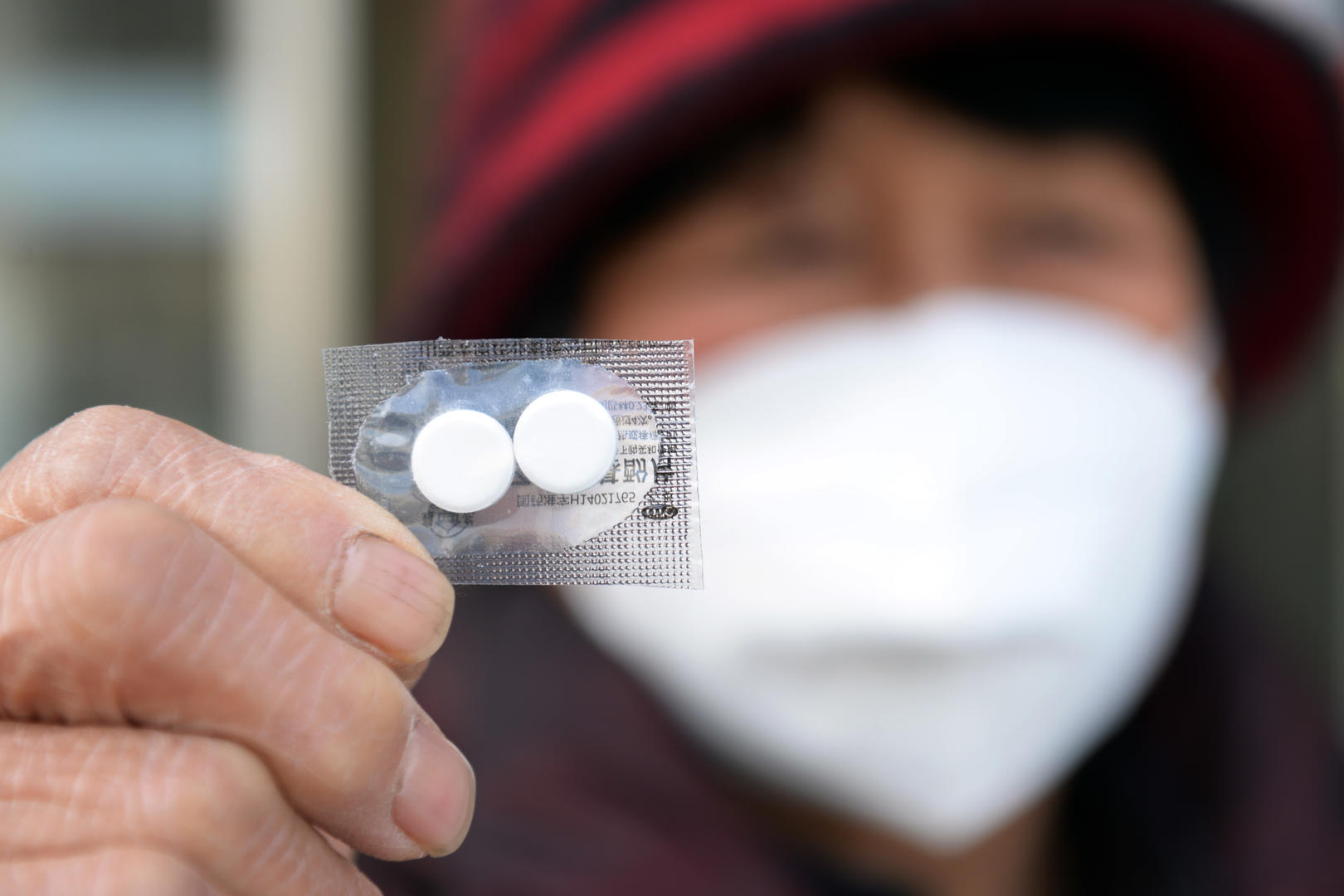 ↑12月21日,山东聊城市民展示刚刚领到的免费退烧药 据IC photo