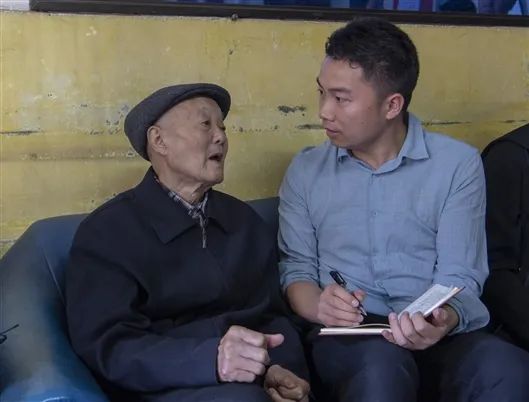 2019年5月,张富清老人接受本报记者李思辉(时任湖北日报评论员)采访。资料图