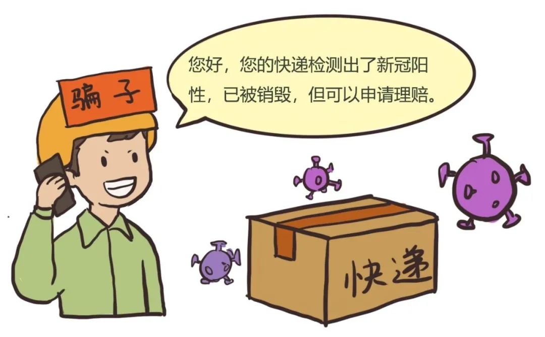诈骗分子冒充快递客服打电话,谎称受害者快递检测出了新冠阳性,已被销毁,但可以申请理赔。