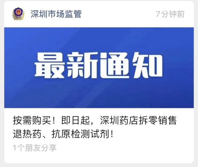 昨日(12月21日)深圳发布通知:即日起,深圳药店拆零销售退热药、抗原检测试剂。