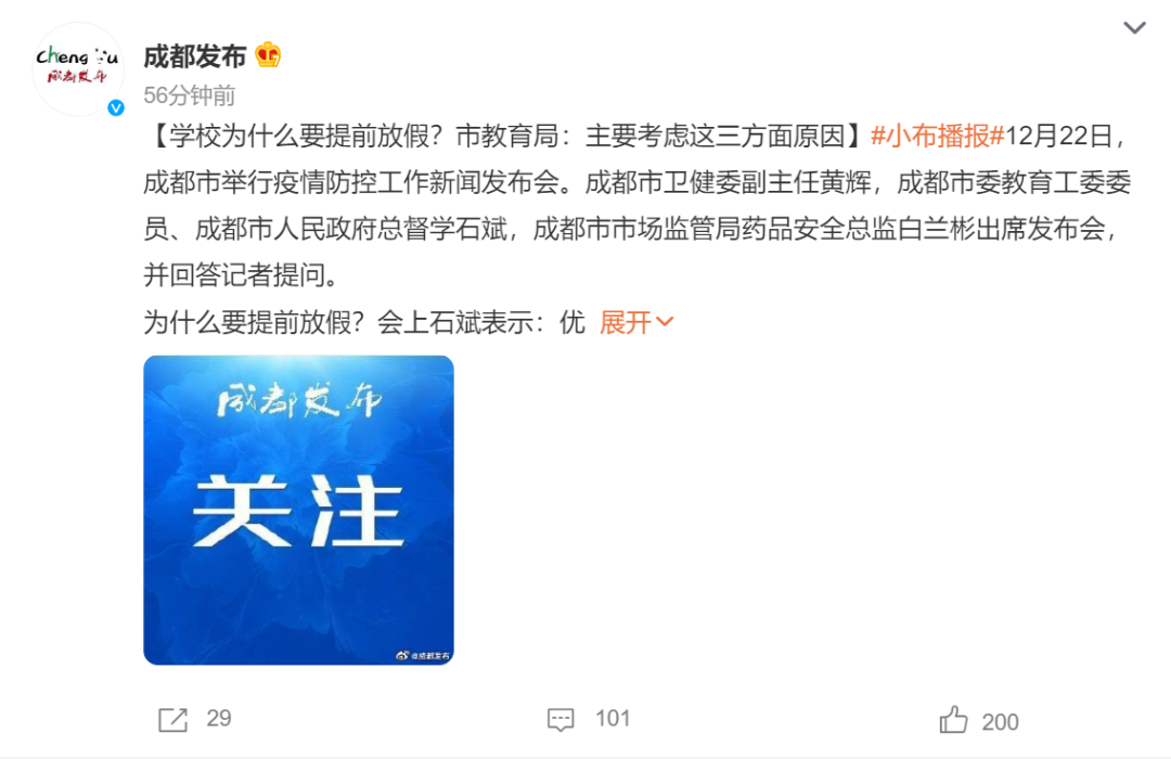 12月22日,成都市举行疫情防控工作新闻发布会。