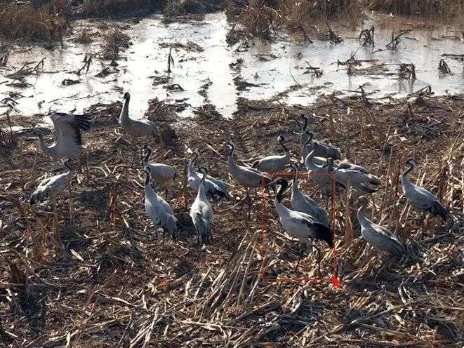 记者从中国野生动物保护协会获悉,12月20日,志愿者在山西省运城市观测到1只黑颈鹤(Grus nigricollis)与数千只灰鹤共同在黄河岸边的农田活动。中国野生动物保护协会组织专家对拍摄到的视频和影像资料进行论证,确认为我国国家一级保护野生动物黑颈鹤。这是黑颈鹤在山西省的首次记录,也是该物种在黄河中游地区的新分布记录。