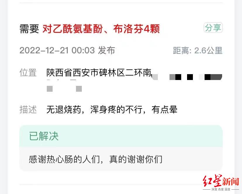 “2021年底,西安出现了一轮比较严重的疫情,大家就会在群里发一些物资求助信息,邻居看到了如果有条件就会提供帮助。”白先生告诉红星新闻记者,后来随着防疫政策调整,本以为这个群里不会再有求助信息了,没想到最近求助信息又多了起来,而且绝大多数都是求药的。