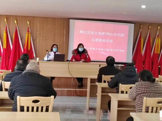 近日,农工党雁江活动小组在保和镇晏家坝村开展民主党派“同心月月送”志愿服务活动,农工党党员、资阳市中医院护理部主任向慧通过通俗易懂的语言向村民详细讲解了糖尿病、高血压等基础性疾病预防,以及在日常生活中的注意事项,引导村民培养健康的生活习惯,树立防护意识,做到早预防、早发现、早治疗。