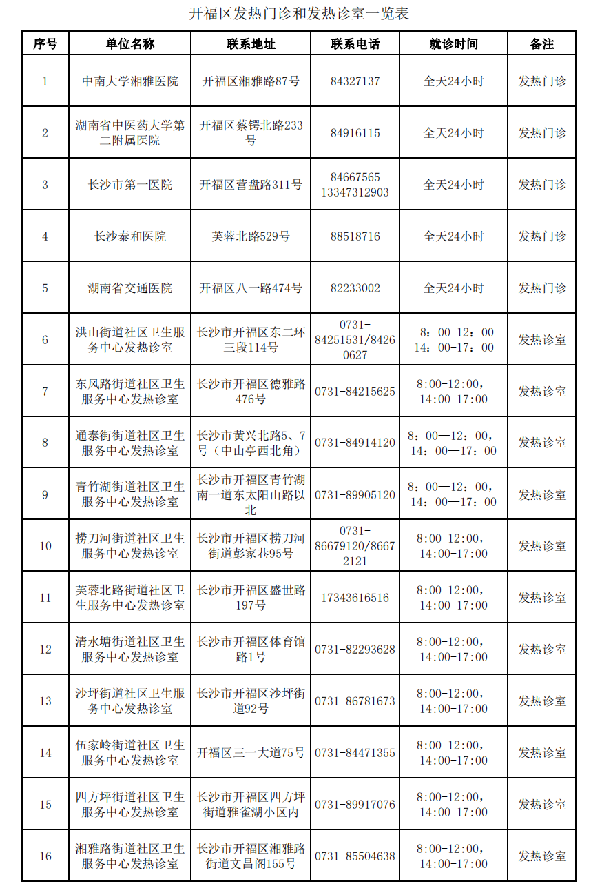 近期,长沙市市民发热、呼吸道感染患者增加,长沙多地更新的发热门诊(诊室)名单,方便患者看病就医。