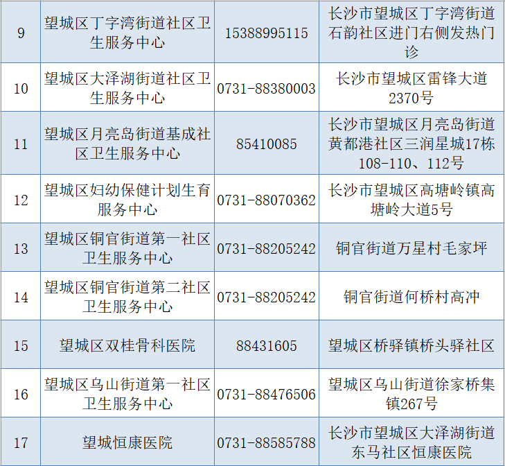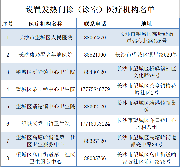 为进一步应对季节性流感、新冠病毒感染等就医需求,望城区迅速调整防疫救治政策,20日对外公布开放104家发热门诊(诊疗点)医疗机构名单,有需要的群众可以前往就诊和检测核酸。