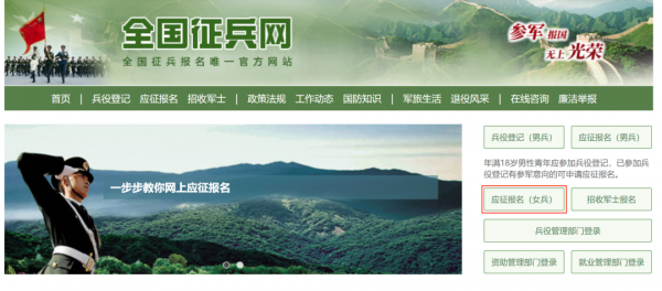 方式一:关注“央视军事”微信公众号,点击首页菜单“应征入伍”→“全国征兵”