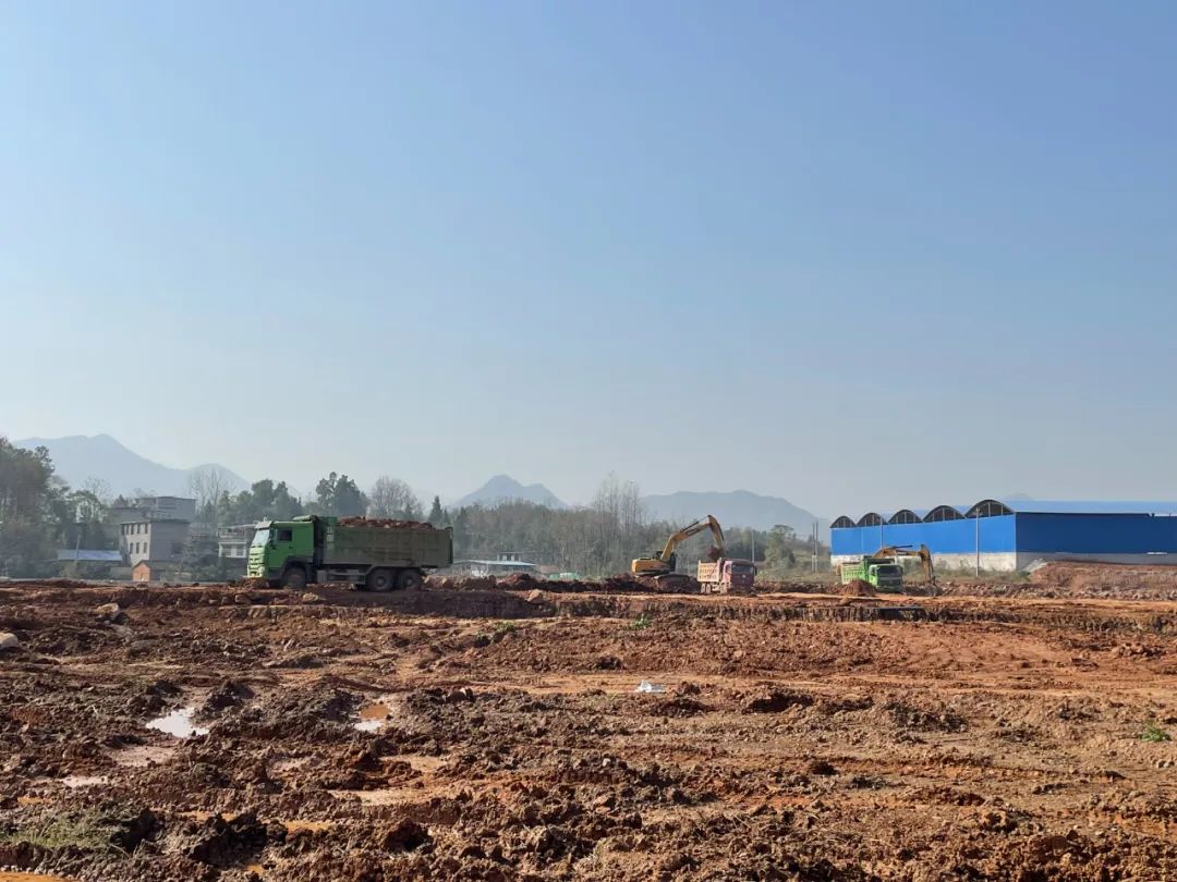 12月14日,通山县南林工业园星光农机产业园项目建设现场,十几台工程机械、几十名工人正忙着运土方、打桩基。