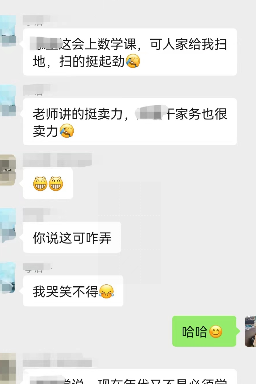 我那天还跟她讨论,当一个班里大多数学生都开着摄像头时,少数几个不开的,可能会引起老师注意。我建议她把摄像头打开,大宝同意了。