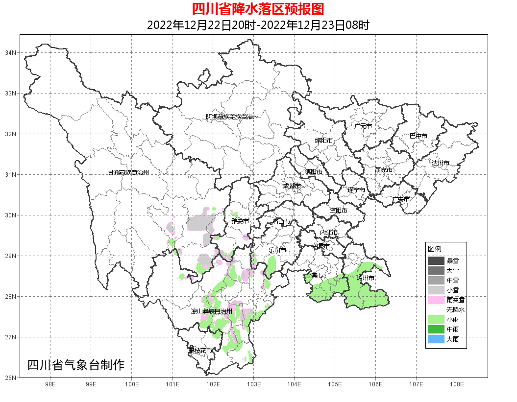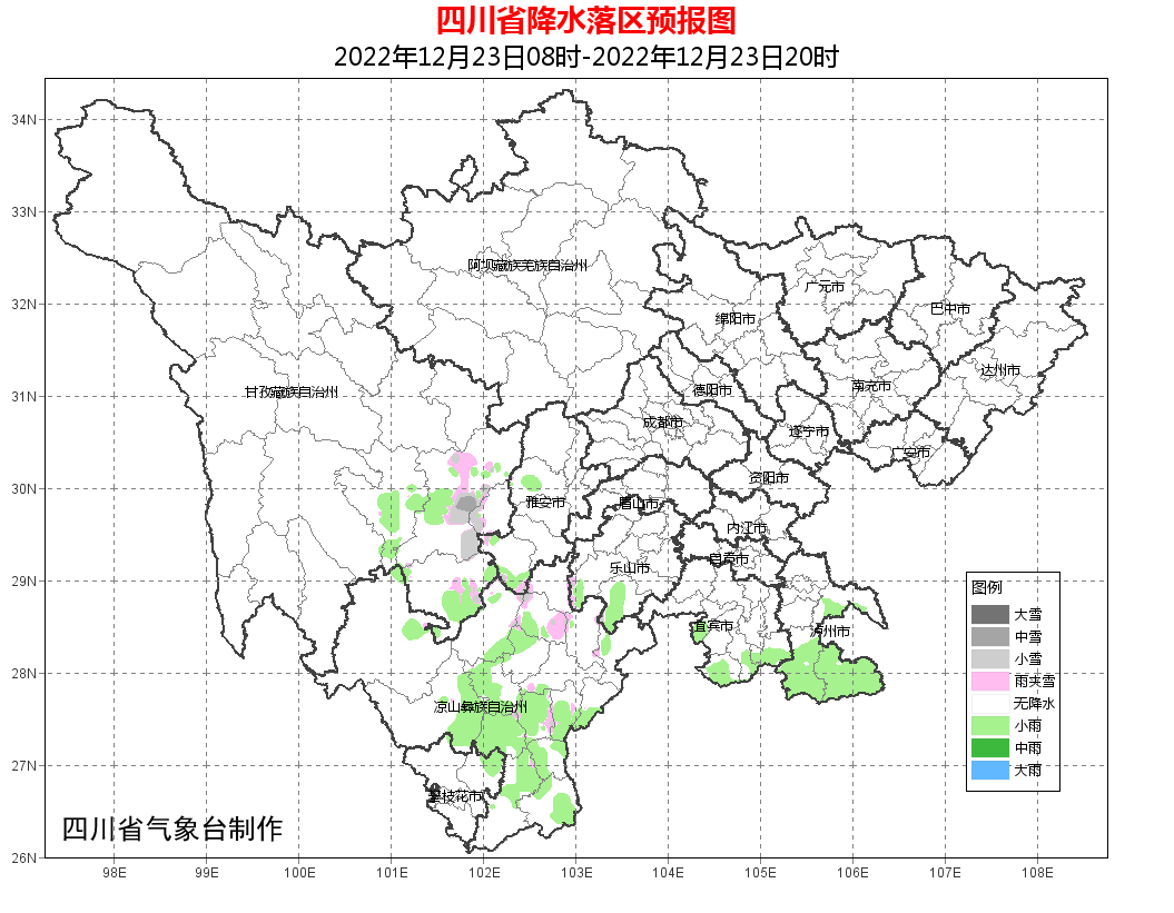 预计24~28日盆地阴天,大部分地方有小雨,高原部分地方阵雪(雨),局部中到大雪,攀西地区阵雨(雪);29日盆地多云,局部小雨,高原北部晴,南部、攀西地区阵雨(雪),局部中到大雪。