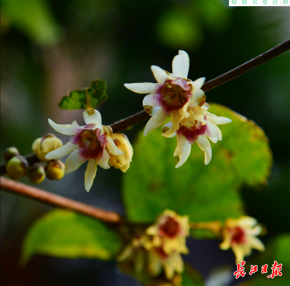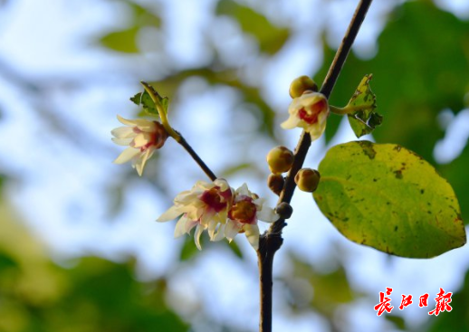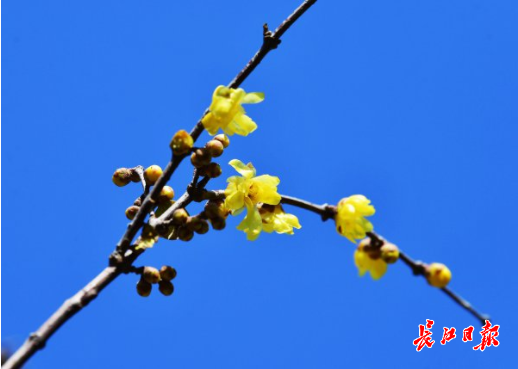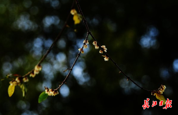 12月22日是冬至节气,虽然天气晴好,但是最低气温已降至零摄氏度以下。东西湖区金银湖一小区内,几株蜡梅树迎着冰点的温度悄然绽放花朵,回应冬至节气的到来。堤角公园的一株蜡梅缀满了花苞,枝头的几朵也抢先开放。令人惊奇的是,码头潭公园和马池中路上,不少桂花树仍在不断冒出花朵,延续着秋的味道。 长江日报记者李永刚 摄