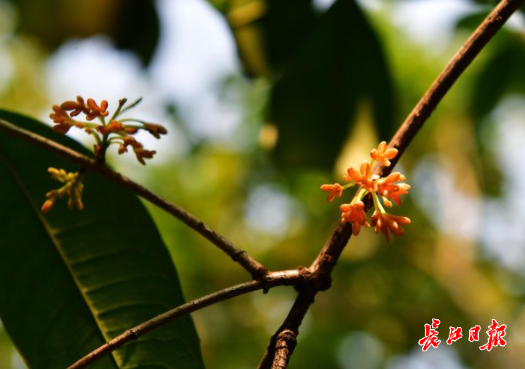 东西湖区码头潭公园,不少桂花树仍在不断冒出花朵,延续着秋的味道。