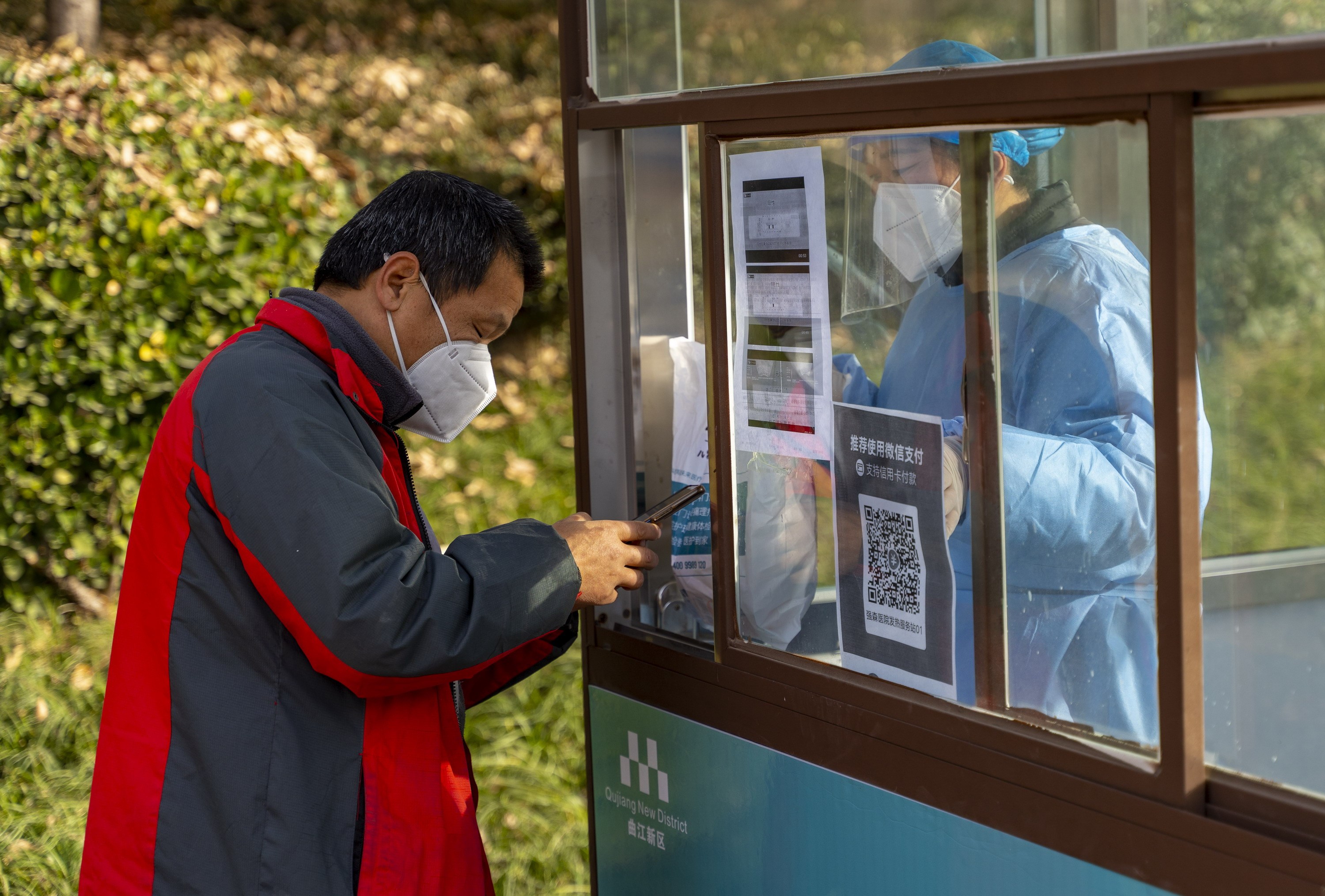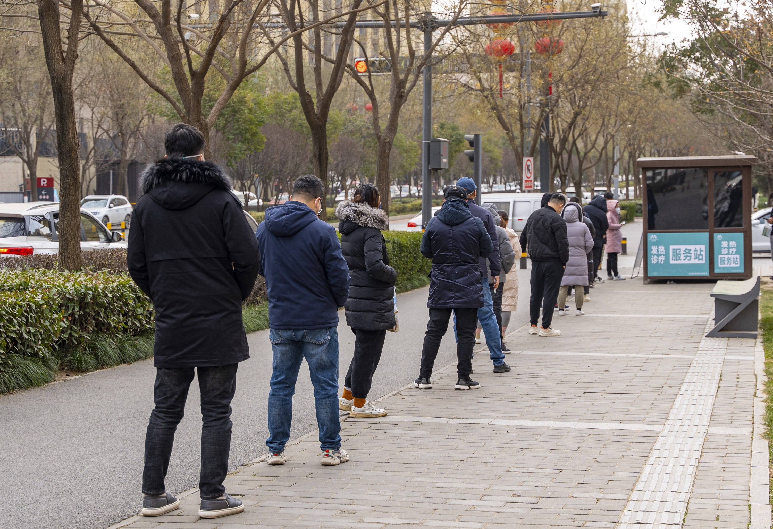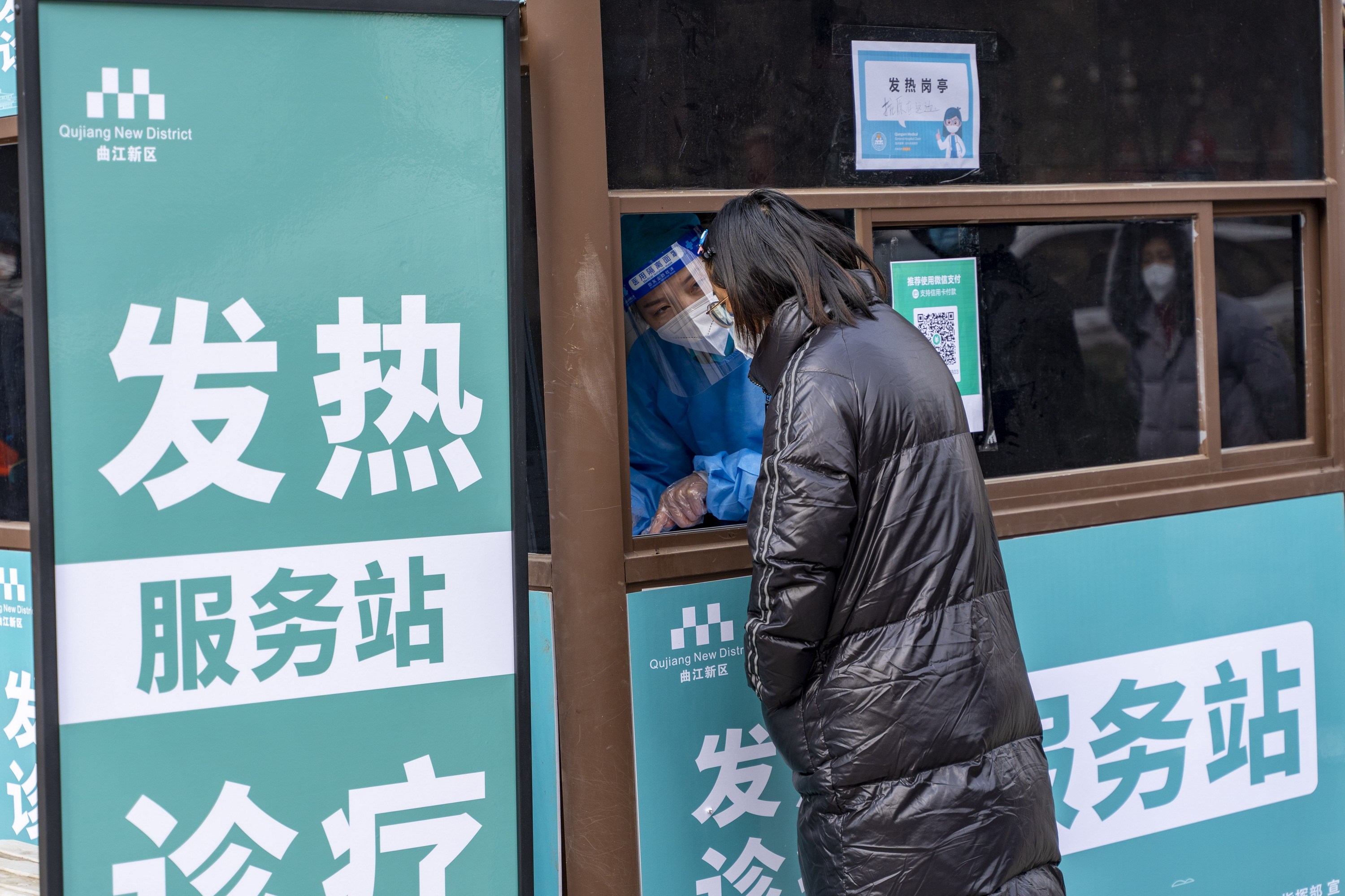 “您是为家人买药还是自己买药?什么地方不舒服?”“我自己有点发烧,喉咙很疼……”12月20日上午10时许,在诸子阶小区东门,由核酸采样亭改造而来的发热诊疗服务站内,医护人员正接待着前来咨询的居民。