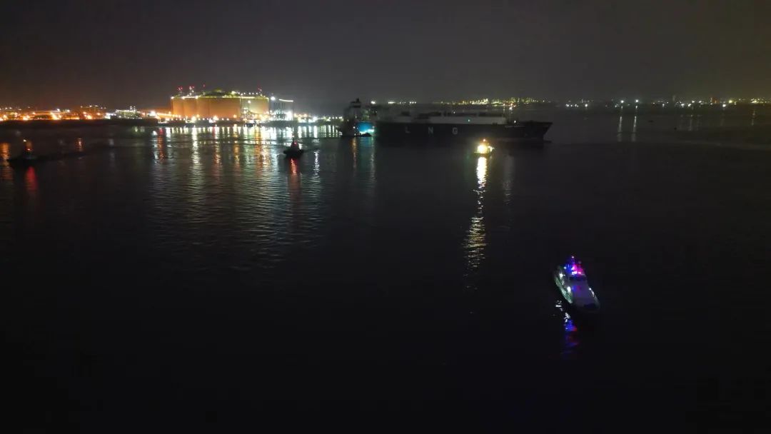 科学实施进出港交通组织和交通管制,船舶交管中心发布临时交通管制,充分利用海事智慧监管系统和VTS等数字化手段对特定航段进行严密远程监控,优先保障LNG船舶离泊作业,确保无其他无关船舶进入该航段。