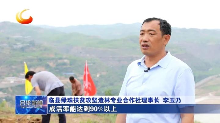 【同期】临县绿珠扶贫攻坚造林专业合作社理事长 李玉乃:经过我们合作社三年的努力,现在我们栽的1800多亩林片区,成活率能达到90%以上。我们有信心能让所有的山头绿起来、让社员的腰包鼓起来。