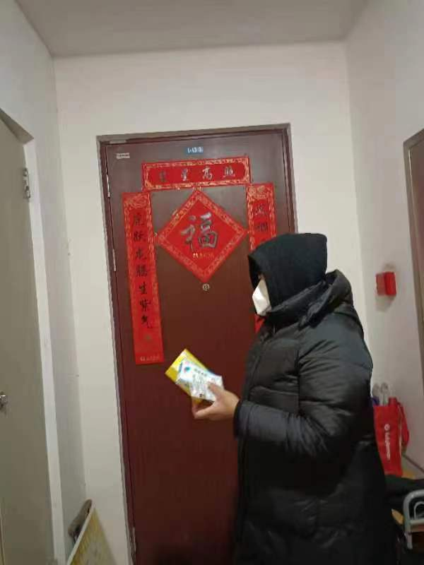 张大爷遇到的“雪中送药”并不是个例。近日,翡翠城社区网格员通过微信群互动、私信、电话沟通等多种方式了解到辖区内的30多名老党员、独居老人、特殊群体确实存在急需药物的情况,第二天,魏书记带着社区网格员用5个多小时的时间把30多份药送到了居民手上,连午饭都没吃上。这些药来自和平区委、区政府筹措的防疫物资“两邻”共享药箱,她把每份药都放到一个密封袋里,上面贴着小纸条“党派我来的”,跟网格员一起带着这些装好的药,一户一户地贴到门上,等离开后再给居民打电话并嘱咐居民拿到药了先消毒,有症状看好说明书再服用。